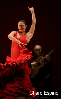 ROSARIO ESPINO, bailaora y bailarina de Danza Española paya, más conocida en este mundo del arte con su propio nombre artístico de CHARO ESPINO, nació en Sevilla, en el año de 1967. La actividad profesional de la bailaora Sevillana arrancó a finales de los ochenta, participando como primera bailarina con las compañías Ballet Teatro Español de Rafael Aguilar, Compañía de Teatro de Danza Española de Luisillo, Ballet Danzarte de Joaquín Ruiz, Ballet Español de Miguel Ángel, Compañía de Paco Peña. Maestros como Caracolillo, Manolo Marín, Ciro, Paco Romero y Paco Fernández, ponen los cimientos del baile de Charo Espino.