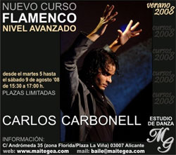 CARLOS CARBONELL, bailaor, estudió danza española y flamenco, más conocido mundialmente con su propio nombre artístico de CARLOS CARBONELL, nació en Cádiz en el año de 1979. Estudio de mano de figuras como Israel Galván, Mario Maya, Antonio Canales, Eva Yerbabuena y Manolete, entre otros, además de formarse en interpretación, canto y danza contemporánea. Inició su carrera artística dirigido por Charo Cruz trabajando en festivales y tablaos por España. Más tarde, formó parte de compañías como las de Manuela Carrasco, Sara Baras, Rafael Amargo y Eva Yerbabuena.