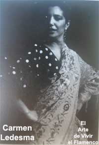 CARMEN LEDESMA MACHITO, bailaora, más conocida mundialmente en el arte de la historia del baile flamenco con su propio nombre artístico de CARMEN LEDESMA, nació en Sevilla en el año de 1956, Discípula de Enrique El Cojo. Se inició artísticamente a los cuatro años de edad, obteniendo el premio de Galas juveniles. Debutó profesionalmente en 1970, en su ciudad natal, y al año siguiente realiza una gira durante seis meses por América del Sur.