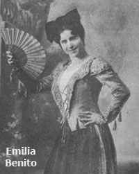 EMILIA BENITO RODRÍGUEZ, fue una artista del cuplé, la canción regional y el flamenco de talla internacional como Raquel Meller o La Fornarina. Conocida mundialmente con su propio nombre artístico de EMILIA BENITO, nació en La Unión (Murcia) en el año de 1890, y murió en México en 1960, fue hija de Joaquín Benito Rodríguez, “El Satisfecho”, un practicante y barbero del que le viene el apodo familiar, y de Josefa Rodríguez Canovas. A Emilia Benito también se le apodaba La Sastifecha.