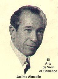 JACINTO ANTOLIN GALLEGO, cantaor payo, de gran poderío y solera para el cante, nació en ese bello pueblo de Almaden (Ciudad Real), en el año de 1.899 y murió en Igualada (Barcelona) en el año de 1.968, su nombre artístico más conocido era del NIÑO DE ALMADÉN, se inició artísticamente en Calzada de Calatrava, al realizar una sustitución en el elenco del Niño de Genil, a los dieciséis años.