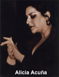 ALICIA ACUÑA ABELAR, cantaora y bailaora gitana, más conocida mundialmente con su propio nombre artístico de ALICIA ACUÑA, nació en Sevilla el día 14 de Julio del año de 1978, comienza su formación en primer lugar como bailaora en los años 80 con varios profesores como Andes Marín (padre), Matilde Coral, Manolo Marín, etc, hasta el año 92. En el 93 pasa a formar parte de la tertulia de la Peña Cultural Flamenca “Pies Plomo” (Sevilla) como aficionada al cante, donde empieza su carrera como artista en este campo. En el 98 actúa en la X Bienal de arte flamenco de Sevilla, en el ciclo “Sabor a peñas”