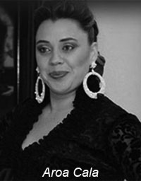 AROA CALA LUQUE, cantaora paya, más conocida en el mundo del arte flamenco con su propio nombre artístico de AROA CALA, nació el día 6 de febrero del año de 1979, en El Puerto de Santa María (Cádiz). Desde su niñez cuando pronunciaba las primeras palabras también apuntaba al cante ya que en el seno de su familia se respiraba siempre un ambiente muy flamenco. Gracias a su padre un gran aficionado al cante aprendió los cantes básicos para meterse de lleno en el mundo que elige. A la temprana edad de trece años comienza su andadura en concursos de flamenco, peñas, estivales, teatros etc.