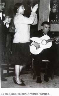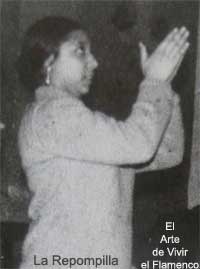 RAFAELA DE LOS REYES PORRAS, cantaora y bailaora gitana, más conocida mundialmente en el arte de la historia del flamenco con el nombre artístico de LA REPOMPILLA, nació en el barrio del Perchel de Málaga en el año de 1949, hermana de la genial artista y cantaora La Repompa. Su trayectoria artística comenzó a los doce años en su tierra natal, concretamente en La Bodega Gitana de Torremolinos, para continuar en diferentes tablaos de la comarca, pasando después a los madrileños El Duende y La Brujas.