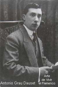 ANTONIO GRAU DAUSET, cantaor payo, más conocido en la historia del arte del cante flamenco con su propio nombre artístico de ANTONIO GRAU DAUSET, nació en Málaga en el año de 1884, y murió en Madrid en el 1968. Hijo del célebre y gran conocido cantaor de nuestra historia del flamenco de El Rojo El Alpargatero. Crecido en el ambiente de los cafés cantantes que su padre regenteaba en La Unión (Murcia) y Cartagena, en 1905 se desplazó a Madrid para cursar estudios, haciéndose íntimo amigo de Escacena y viviendo intensamente el ambiente flamenco.