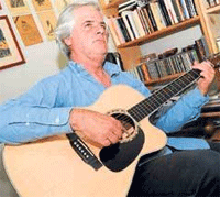 Arantxa Cala / Jerez | Actualizado 20.05.2010 - Fernando Polavieja posa con su guitarra estrella, una Martin, en su estudio, durante la entrevista, días atrás.