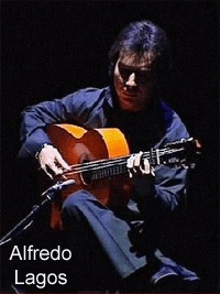 ALFREDO LAGOS, guitarrista payo, más conocido en el mundo del arte de la guitarra con su propio nombre artístico de ALFREDO LAGOS, nació en Jerez de la Frontera (Cádiz) en el año de 1971, Alfredo Lagos forma parte de esa nueva generación de guitarristas que han sabido crear una síntesis extremadamente rica entre el juego clásico y las nuevas armonías desarrolladas por la guitarra de los últimos 25 años. Al contrario que en la generación precedente, fascinada por la agresividad rítmica y el virtuosismo espectacular, él ha encontrado una musicalidad más sugerente, un arte de matices, de nuevas armonías, un juego con los silencios. El guitarrista sale de su papel de puro acompañador rítmico para convertirse en un músico completo.