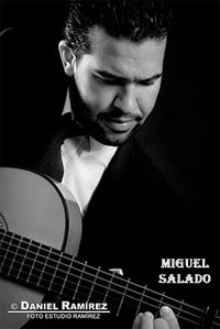MIGUEL ÁNGEL SALADO PUYOL, guitarrista de flamenco, más conocido en la historia del arte de la guitstarra flamenca con su propio nombre artístico de MIGUEL SALADO, nació en Jerez de la Frontera (Cádiz) el día 20 de septiembre del año de 1981. Acompañando a los más grandes: ‘José Mercé’, ‘Paco Cepero’, ‘Pansequito’, ‘Manuel Moneo’, ‘Rancapino’, ‘Luís El Zambo’, ‘Chocolate’, ‘El Torta’. Con apenas nueve años, un regalo de comunión por parte de su tío Juan despertó en Miguel Salado (Jerez, 20 de Septiembre de 1981) unas inquietudes innatas por la guitarra. Desde entonces y hasta hoy, este joven guitarrista ha desarrollado y ampliado su formación musical hasta el punto de convertirse en uno de los tocaores de la tierra con mayor proyección artística.