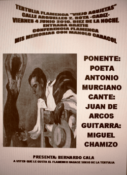 CRONICA CONFERENCIA “MIS MEMORIAS CON MANOLO CARACOL” POR EL POETA ARCENSE, DON ANTONIO MURCIANO.
